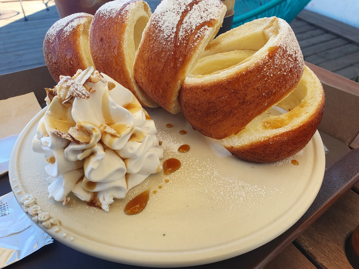 빵을 뜯어서 생크림에 이렇게 찍어먹으면 됩니다